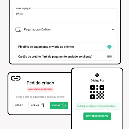 Você pode criar um pedido no PDV e enviar o link para seu cliente finalizar a compra, pagando online.